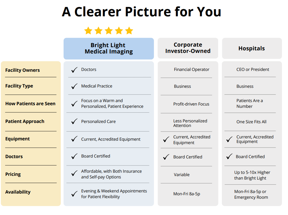 Whether you’re considering Bright Light Medical Imaging, a corporate facility, or a hospital,